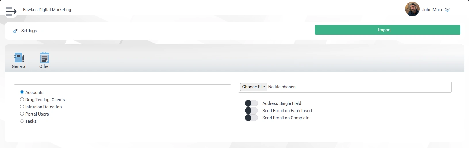 - Click on the button at the top labeled "Import". Depending on how many records you are importing, this can take a few seconds to several minutes. Once complete, the system will let you know that it completed the import process.