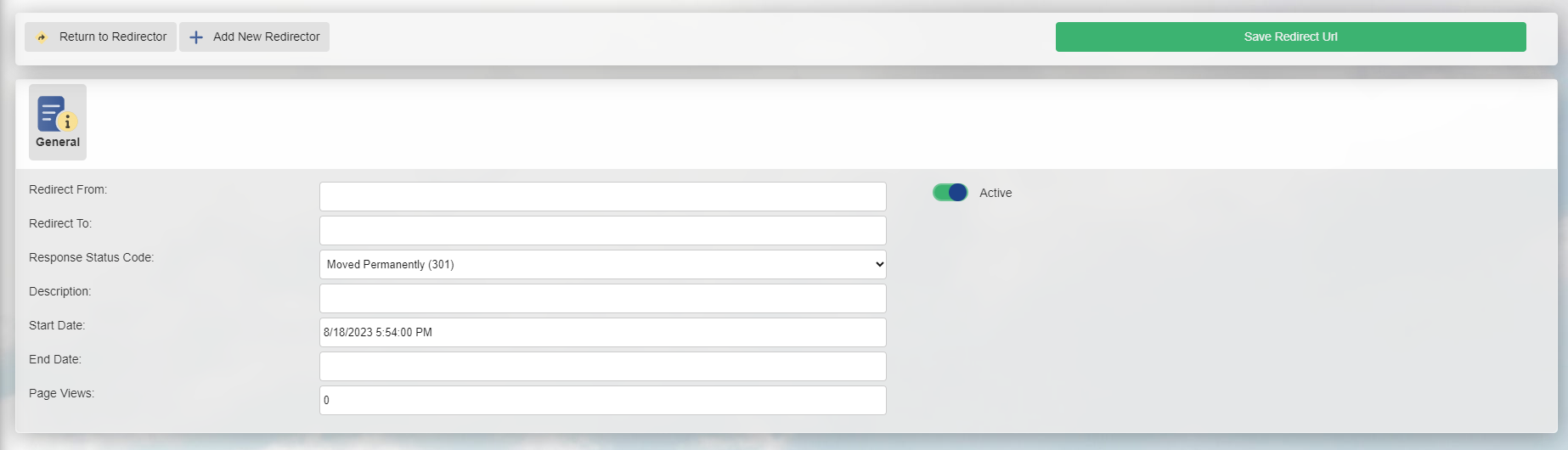 - Active : When active is checked, the system will run this redirection. If this is not checked it will not run.